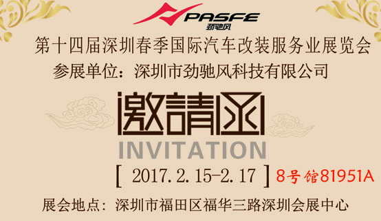 2017 AAITF第十四届深圳春季国际汽车改装展劲驰风科技邀请函-8馆81951A