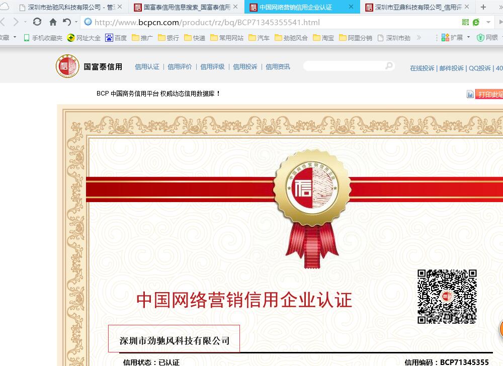 热烈祝贺劲驰风科技荣获国资委认证的“中国网络营销信用企业”