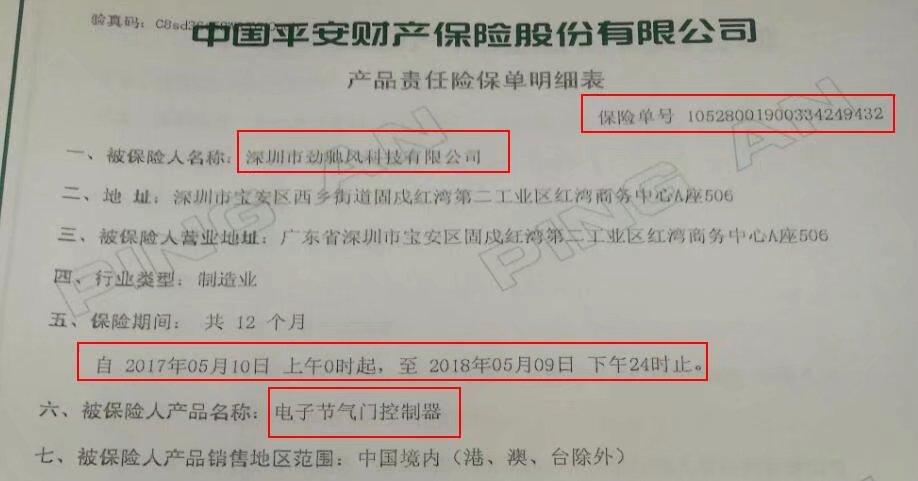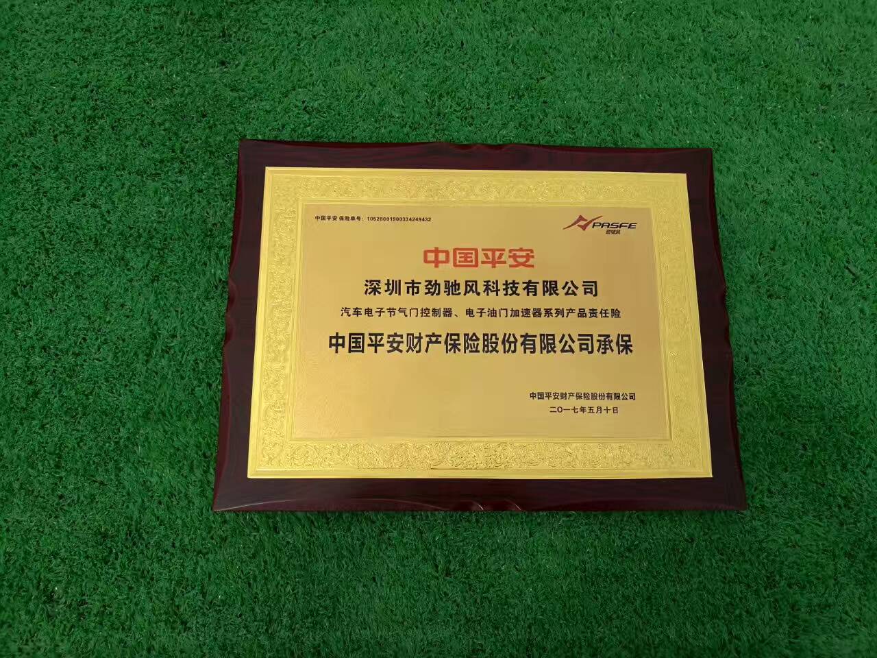 热烈祝贺劲驰风科技“节气门控制器”产品已由中国平安公司承保