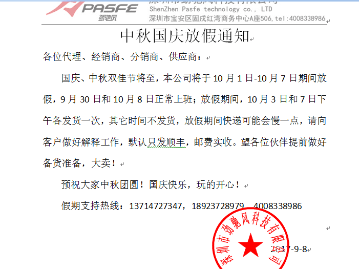 中秋国庆放假通知