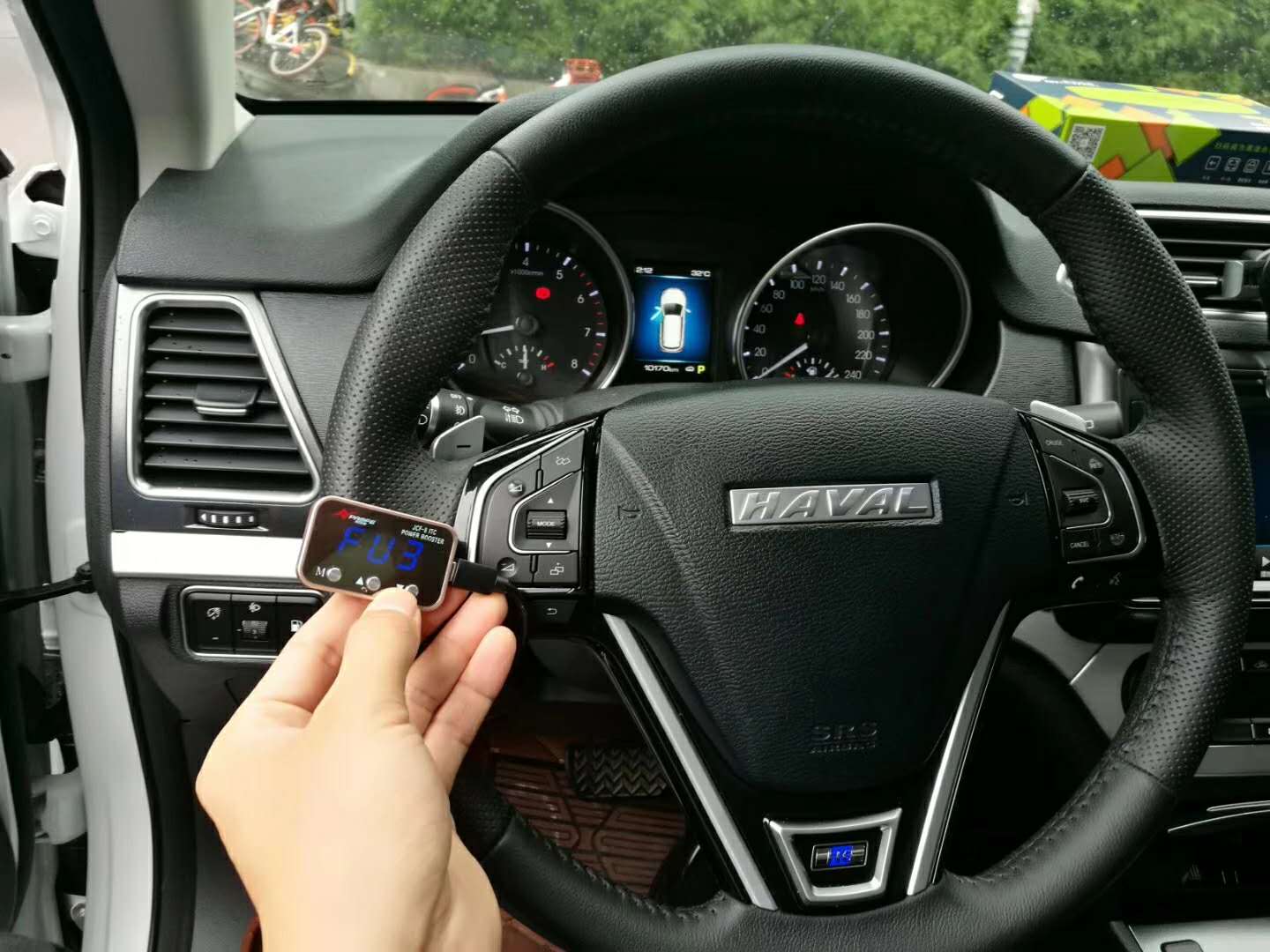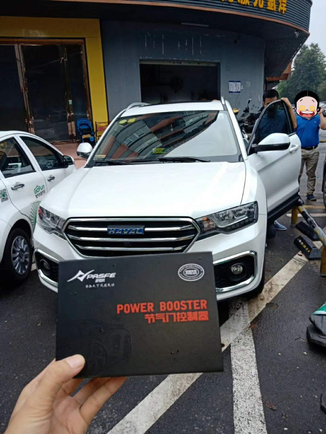 哈弗H6车主自驾爱车来到公司楼下,加装劲驰风第八代电子油门加速器体验动力改善效果。