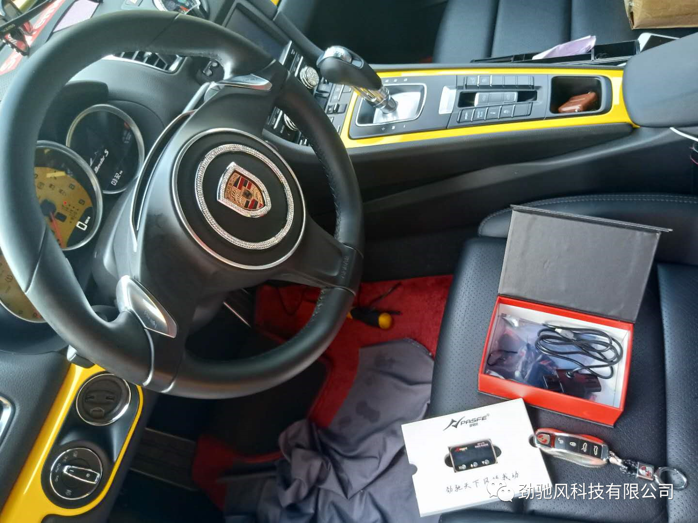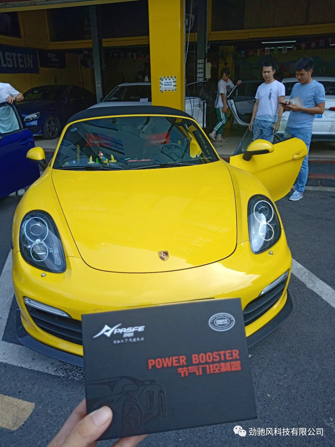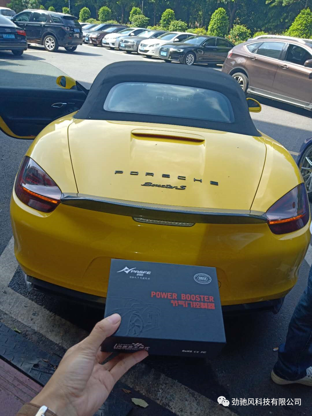 保时捷981车主自驾爱车来到公司楼下,加装劲驰风第八代电子油门加速器体验动力改善效果。