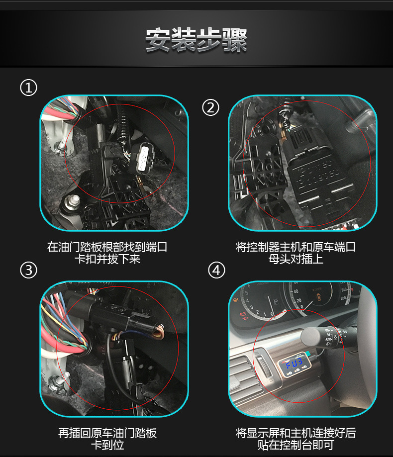 专车专用,市面主流车型均可匹配安装,可自动兼容手自波,真正的环保,无损改装,不用改动原车结构(新车旧车都不用担心损坏),安装不费工时,一般5-10分钟完成安装,即插即用,自动匹配,提速效果动力提升明显,马上出效果。