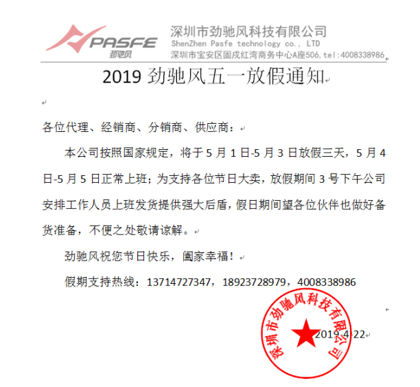 2019劲驰风劳动节放假通知