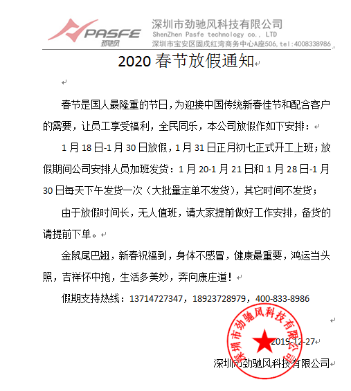 劲驰风2020年春节放假安排
