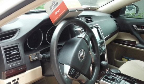 把电子油门加速器控制屏幕粘贴在方向盘左右自己方便操作的地方,安装就算完成了。马上试车,去感受飞一般的感觉吧。