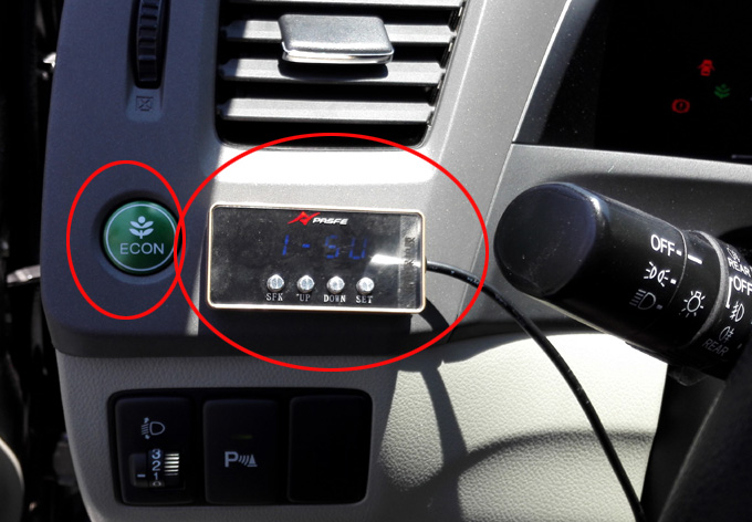下图红圈中,左边绿色ECO按键为原车自带功能,右边为劲驰风加速器控制屏(上面有保护膜还没有撕掉),我们的加速器,也一样带这个ECO节油功能;我们就是搬运工,把高配车上好的适用的功能搬到你的爱车上,从而实现功能的升级。