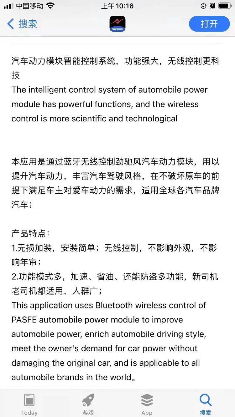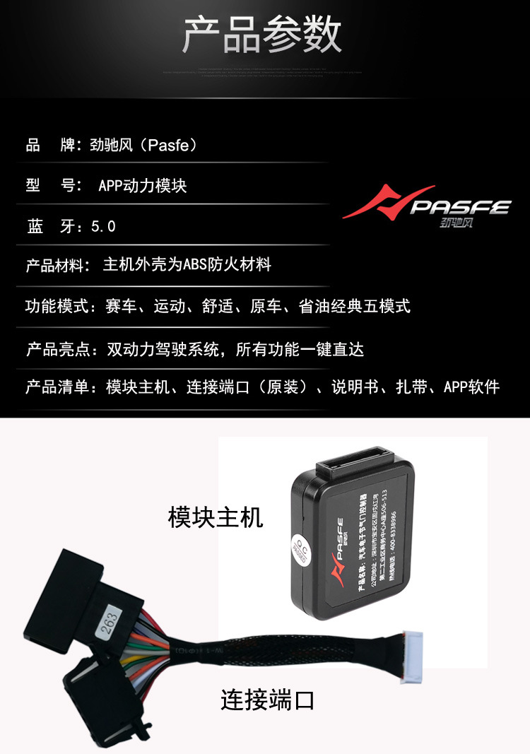 - 品牌: 劲驰风Pasfe 型号: AP系列 零售价:1399元 支持车型: 奔驰宝马奥迪大众丰田日产大众福特雪佛兰等所有品牌电子油门车型 安装方法: 无损安装 售后支持:三年保修
